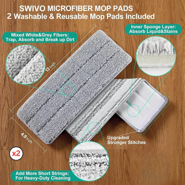 โ Ultra-Absorbent Swivo Microfiber Mop Pads (2 Included)